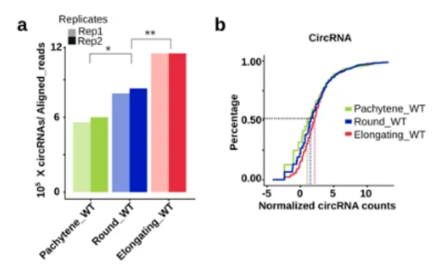 結果一:環狀 RNA 在精子發生過程中大量表達
