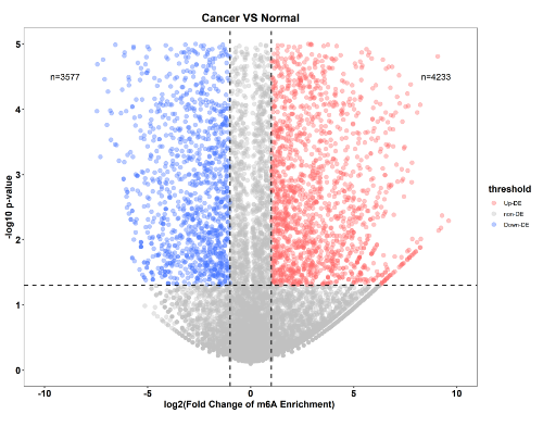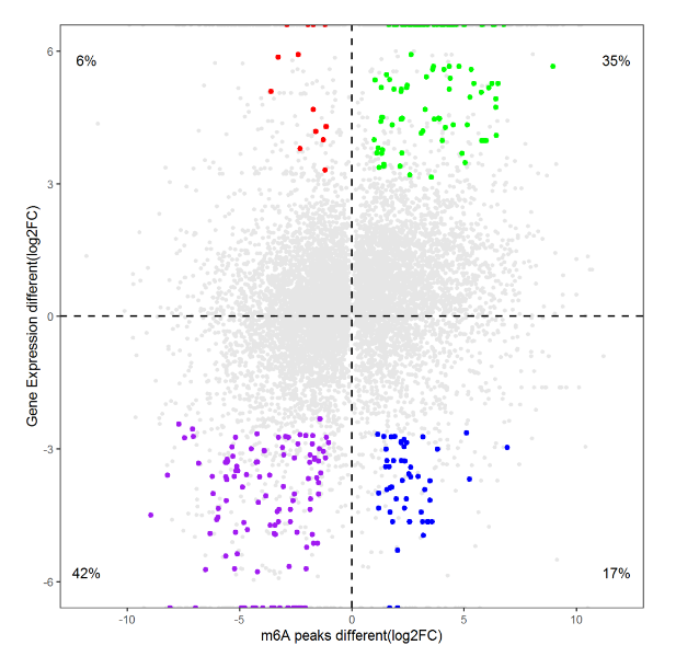 m6A-seq 與轉錄組數據的 關聯分析四象限圖