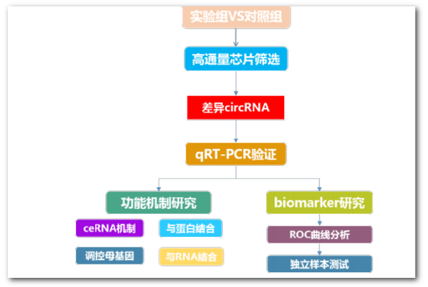上面這篇文章使用的就是研究 circRNA 芯片常使用的一套研究思路: